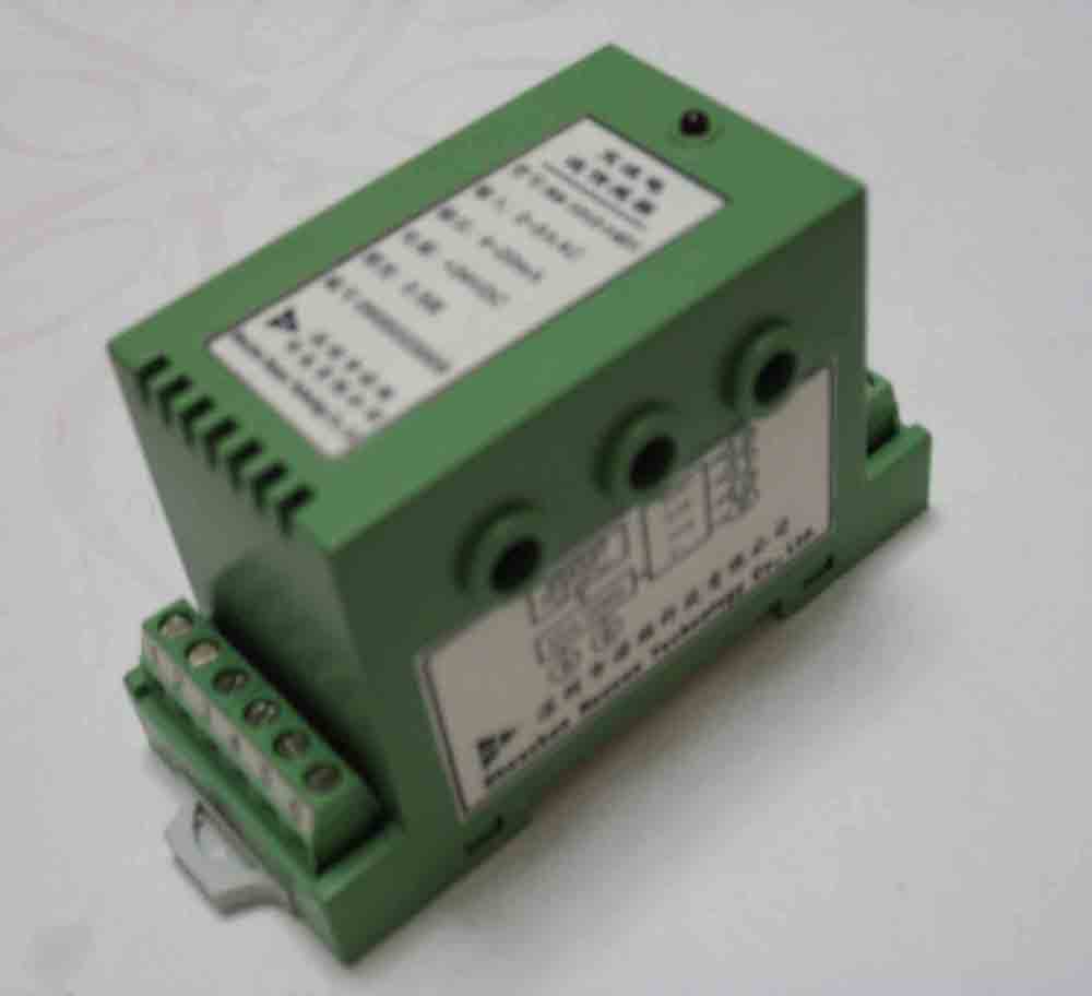 概述 該產品可以對三路交流電流進行無接觸式測量(穿孔式輸入),輸入為三路交流電流,被測信號范圍為0~0.5~30A,穿孔孔徑為6mm,輸出信號可以是標準的電流信號或電壓信號,也可以按用戶要求訂制,三組輸出信號是完全獨立的用戶可以不共地使用;輔助電源可以是+5V、+12V、+15V和+24V;產品采用DIN35國際標準安裝方式;體積小、可靠性高、外形美觀、單電源、可以直接使用,方便靈活。可以廣泛廣泛用于電力、通訊、工業控制、安防工程、自動控制、化工、石油、電鍍扥領域。 產品特性 1、精度等級:0.5級。產品出廠前已檢驗校正,用戶可以直接使用 2、每路信號輸入:0~500mA~30A任選 3、每路輸出信號:0~5V/0~10V/1~5V,0~10mA/0~20mA/4~20mA等 4、具有高負載能力